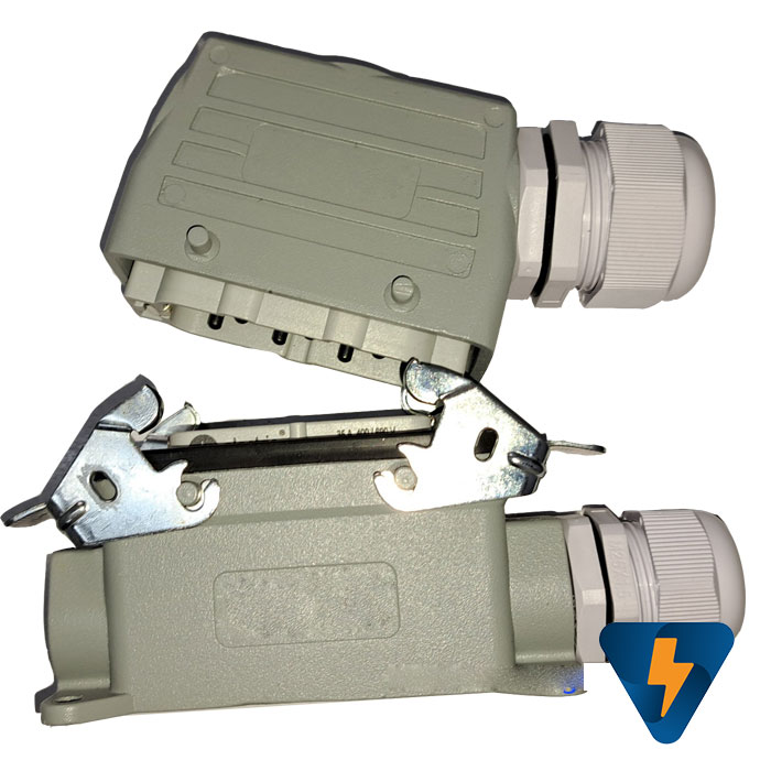 Bộ giắc cắm công nghiệp 6 chân 35A, vỏ bọc bên ngoài bằng nhôm sơn tĩnh điện ứng dụng kết nối tín hiệu điều khiển trong các máy móc công nghiệp. Bộ giắc cắm công nghiệp 6 chân 35A được thiết kế sử dụng trong môi trường công nghiệp hoạt động bền bỉ liên tục cấp độ bảo vệ IP65. Bộ giắc cắm công nghiệp 6 chân 35A có các khớp kết nối với nhau bằng cao su, nên hoàn toàn kín nước và kín bụi khi liên kết lại với nhau, đồng thời dễ dàng tháo lắp khi có nhu cầu.