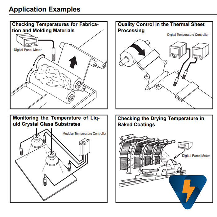 - Đo nhiệt độ bề mặt với những vị trí khó lắp đặt cảm biến, nguy hiểm nếu lắp cảm biến trực tiếp...