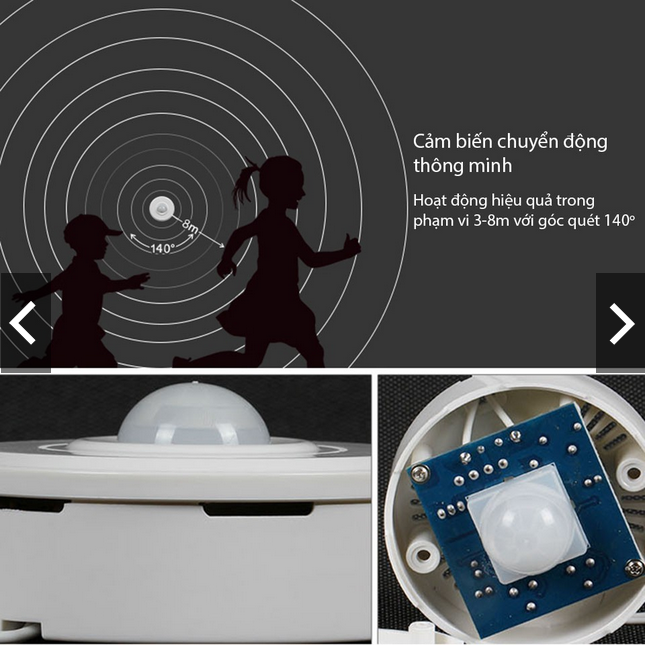 - Cảm biến hồng ngoại thân nhiệt: khi có người bước vào vùng cảm biến đèn mới sáng.