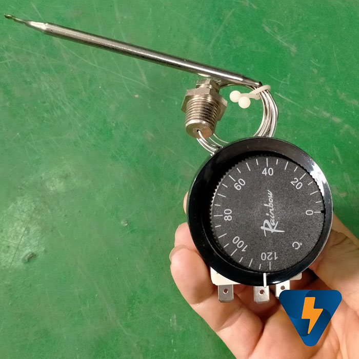 Công tắc nhiệt độ Rainbow TS-120S tích hợp sẵn cảm biến nhiệt độ, dải nhiệt độ cài đặt từ 0-120 độ, có 1 cặp tiếp điểm (NO,NC) 20A, cho phép sử dụng trực tiếp công suất lên đến 4kw tải trở, Công tắc nhiệt độ Rainbow TS-120S được ứng dụng nhiều trong các tủ điều khiển nhiệt độ kho lạnh, nhiệt độ đun sôi nước, sấy thực phẩm, lò nướng, bếp nướng, hoặc dùng điều khiển nhiệt độ quạt hút gió tủ bảng điện công nghiệp, dân dụng. Công tắc nhiệt độ Rainbow TS-120S dễ dàng lắp đặt, tiết kiệm chi phí