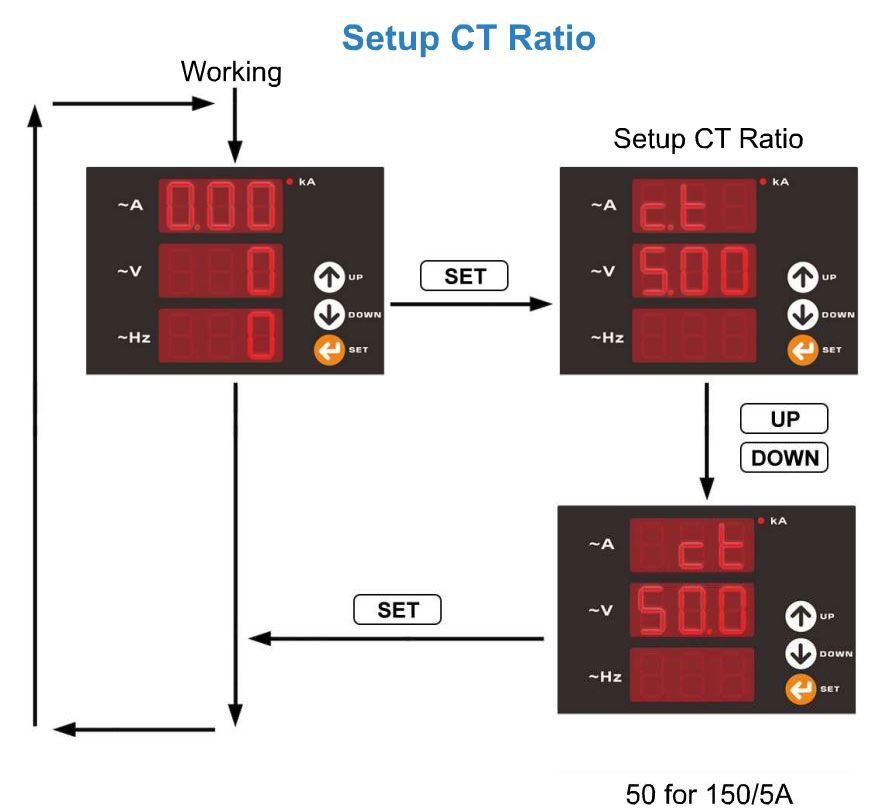 - Thiết lập tỷ lệ CT: 5/5A~9995/5A(...x5)