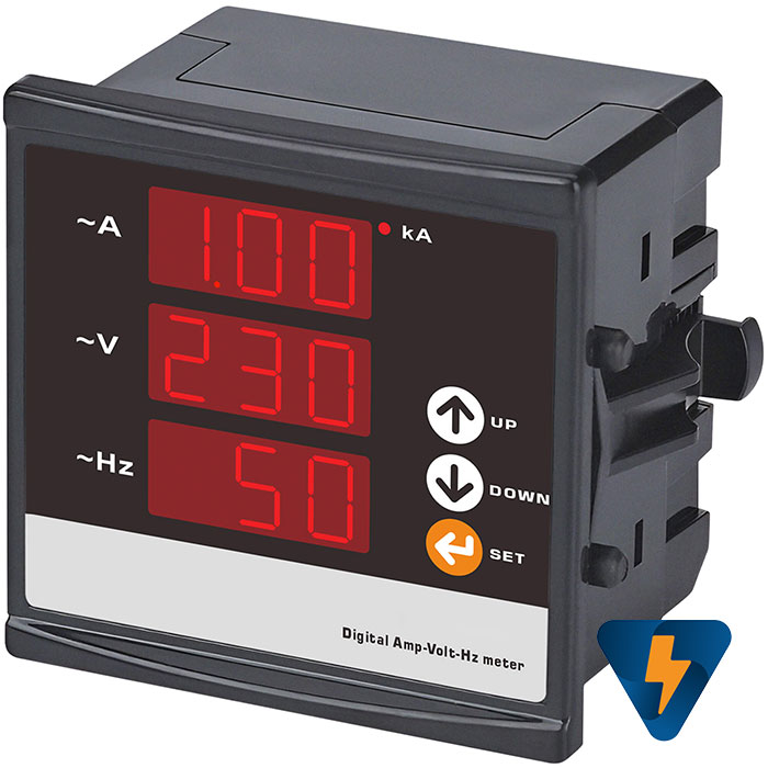 Đồng hồ Ampe,Volt,Hz tần số được thiết kế để giám sát điện áp, dòng điện và tần số của nguồn điện một pha, 3 pha hữu ích trong việc theo dõi tình trạng làm việc của nguồn điện, máy phát điện hoặc động cơ điện ba pha, giúp đánh giá tình trạng vận hành của máy phát điện, độ ổn định của nguồn điện và phụ tải.