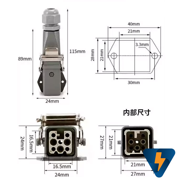 Giắc cắm (jack cắm) 8 chân 10A vuông kiểu nằm ngang vỏ bọc bên ngoài bằng nhôm sơn tĩnh điện ứng dụng kết nối tín hiệu điều khiển trong các máy móc công nghiệp. Giắc cắm (jack cắm) 8 chân 10A vuông kiểu nằm ngang được thiết kế sử dụng trong môi trường công nghiệp hoạt động bền bỉ liên tục cấp độ bảo vệ IP65. Giắc cắm (jack cắm) 8 chân 10A vuông kiểu nằm ngang có các khớp kết nối với nhau bằng cao su, nên hoàn toàn kín nước và kín bụi khi liên kết lại với nhau, đồng thời dễ dàng tháo lắp khi có nhu cầu.