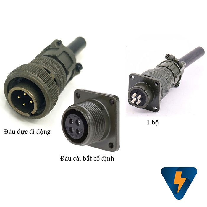 Giắc cắm (phích cắm) 4 chân 13A tròn, thiết kế theo tiêu chuẩn quân đội có màu xanh đặc thù, được sử dụng nhiều trong quân đội, và các máy móc công nghiệp, với khả năng kết nối tốt, chính xác chống bụi chống nước cao (IP65), Giắc cắm (phích cắm) 4 chân 13A tròn, phích cắm nhiều chân tròn chất lượng cao có vỏ bọc bên ngoài bằng MS3106A-14-2PMS3102A-14-2S nhôm chất lượng cao