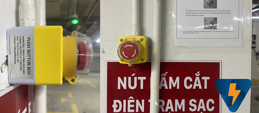 Hình ảnh hộp nút nhấn khẩn cấp lắp đặt tại công trường
