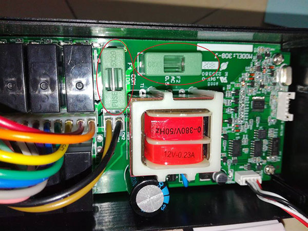 Để đấu bộ điều khiển người đấu cần chú ý 2 dây nguồn Power 1 (màu đen), dây Power 2 (màu nâu) và dây Com (màu da cam), 3 dây đấu vào 3 pha của nguồn 380V.