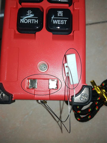 Bước 2: Lắp pin cho bộ phát của bộ điều khiển từ xa cho cầu trục (nút bấm cầm tay)