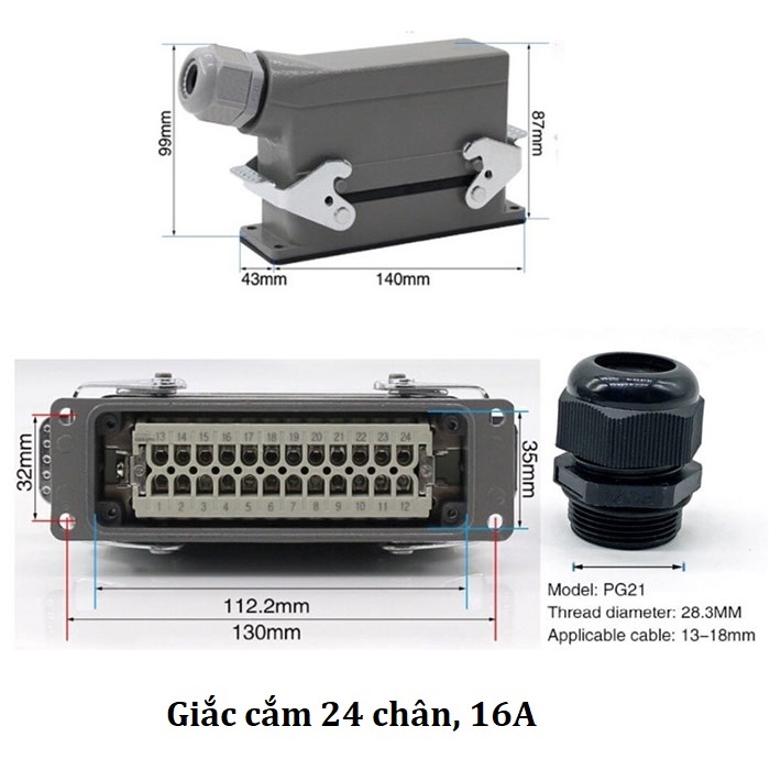 Thông số kỹ thuật Giắc cắm 24 chân 16A