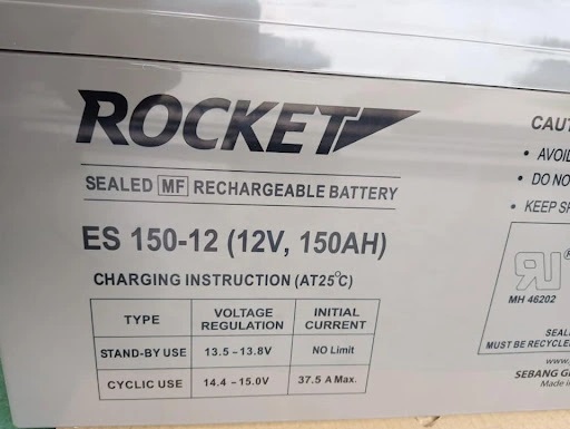 - Ví dụ: Bình ắc quy Rocket ES150-12 có dung lượng 150Ah dùng để cấp điện cho thiết bị công suất 300W thì thời gian sử dụng của ắc quy là: t = 150*12*0,7/300 = 4.2 giờ.