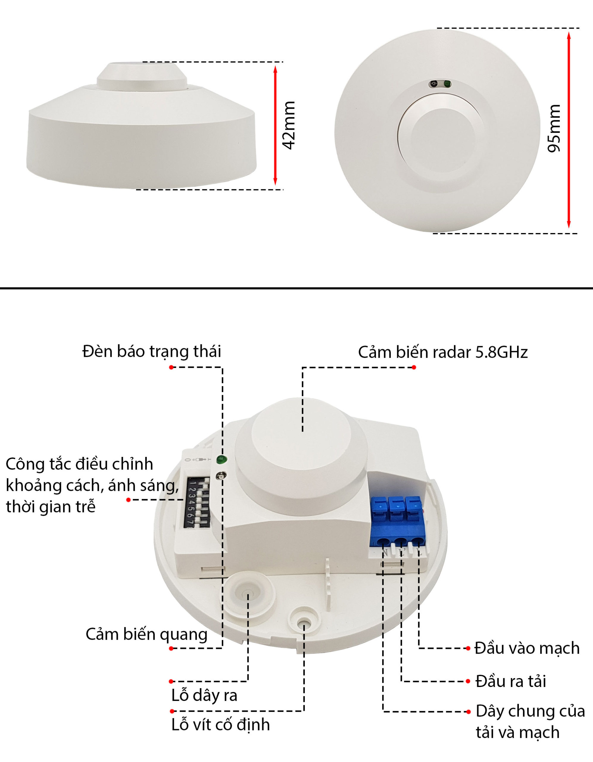 Ưu điểm của cảm biến radar là phạm vi rộng (từ 6m – 8m), có thể điều chỉnh phạm vi phát radar linh hoạt, không có điểm mù, nhạy cảm với tất cả các vật chuyển động, có thể cảm biến xuyên vật cản, có thể điều chỉnh góc độ, chiều cao lắp đặt tối đa lên tới 4m… Nó phù hợp với khu vực rộng lớn, thường xuyên có cả người và vật di chuyển đi qua như kho hàng, nhà xưởng, phòng thí nghiệm…
