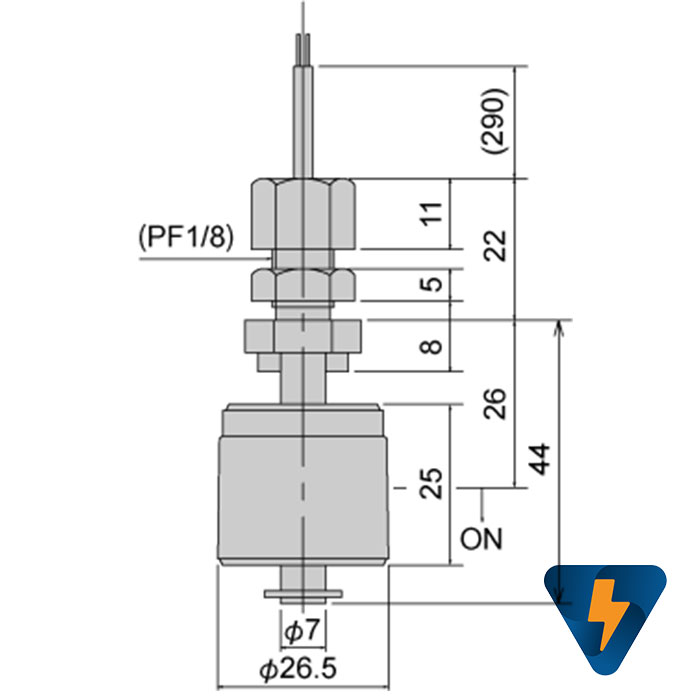 - Khi mức nước tác động vào phao, phao tịnh tiến theo trục với một hành trình rất ngắn. Tiếp điểm công tắc từ bên trong thay đổi trạng thái.