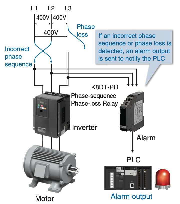 Để xác định xem có mất cân bằng pha hay không, rơle giám sát từng pha để phát hiện khi điện áp trong một pha bất kỳ giảm xuống dưới mức xác định trước dưới mức trung bình của cả ba pha. Tương tự, nếu phát hiện mất hoàn toàn một pha, rơ le sẽ ngắt và ngắt điện khỏi động cơ.